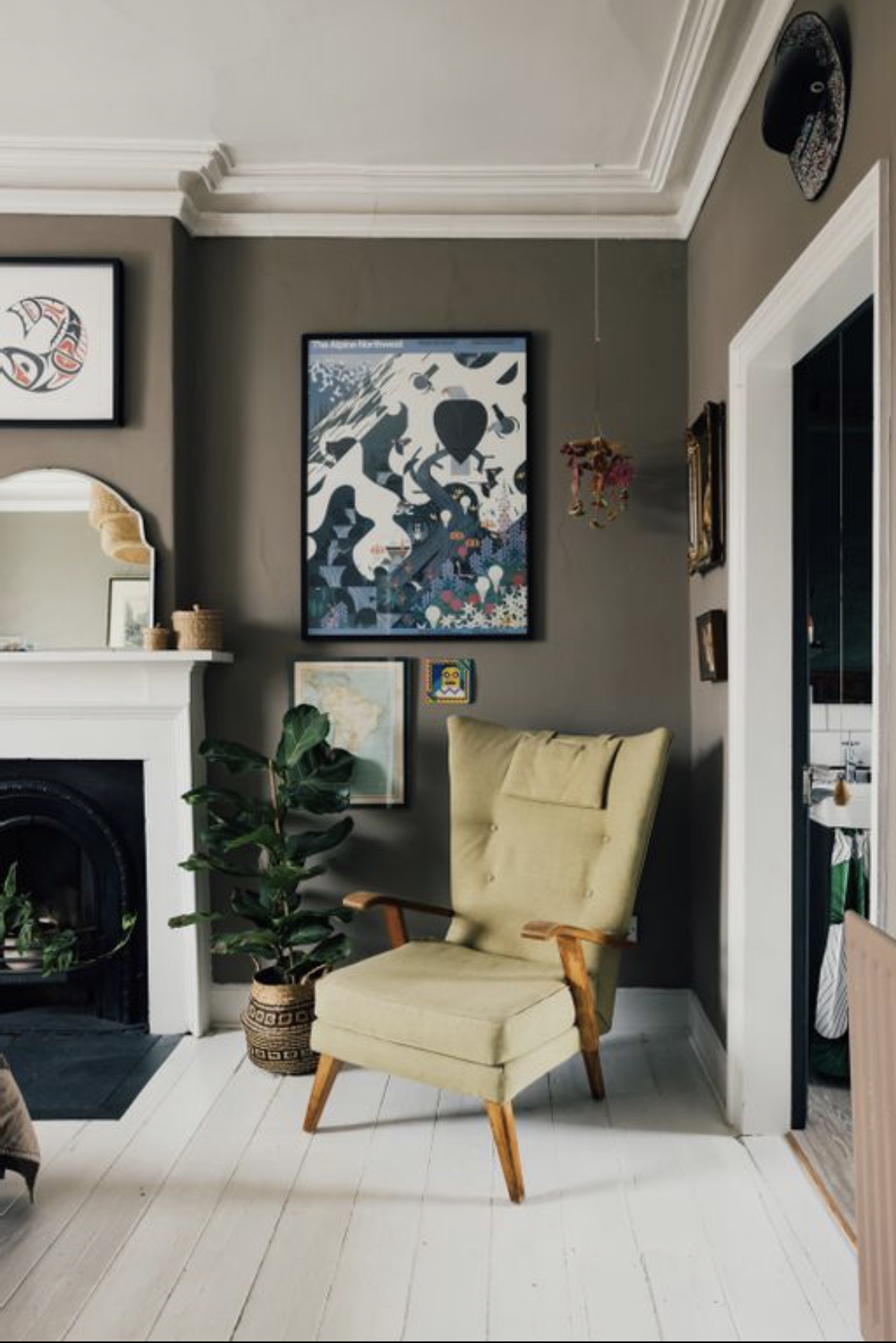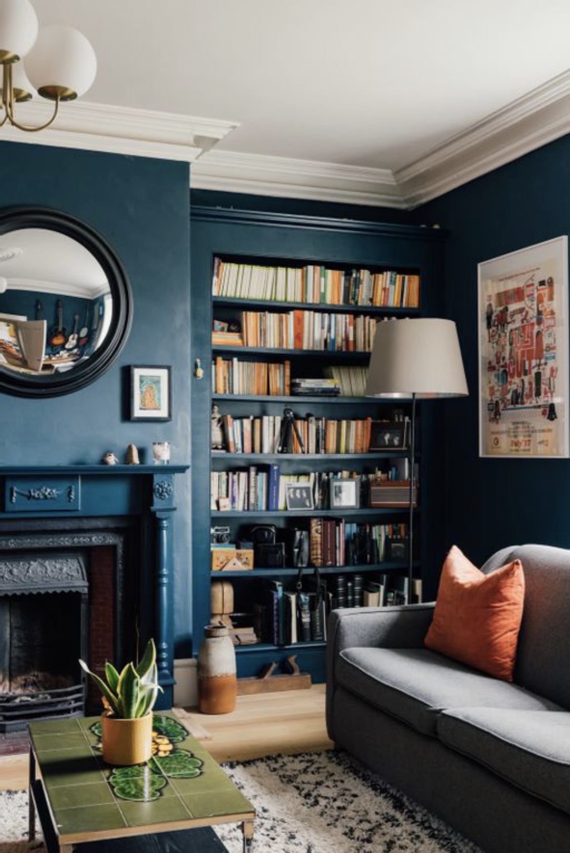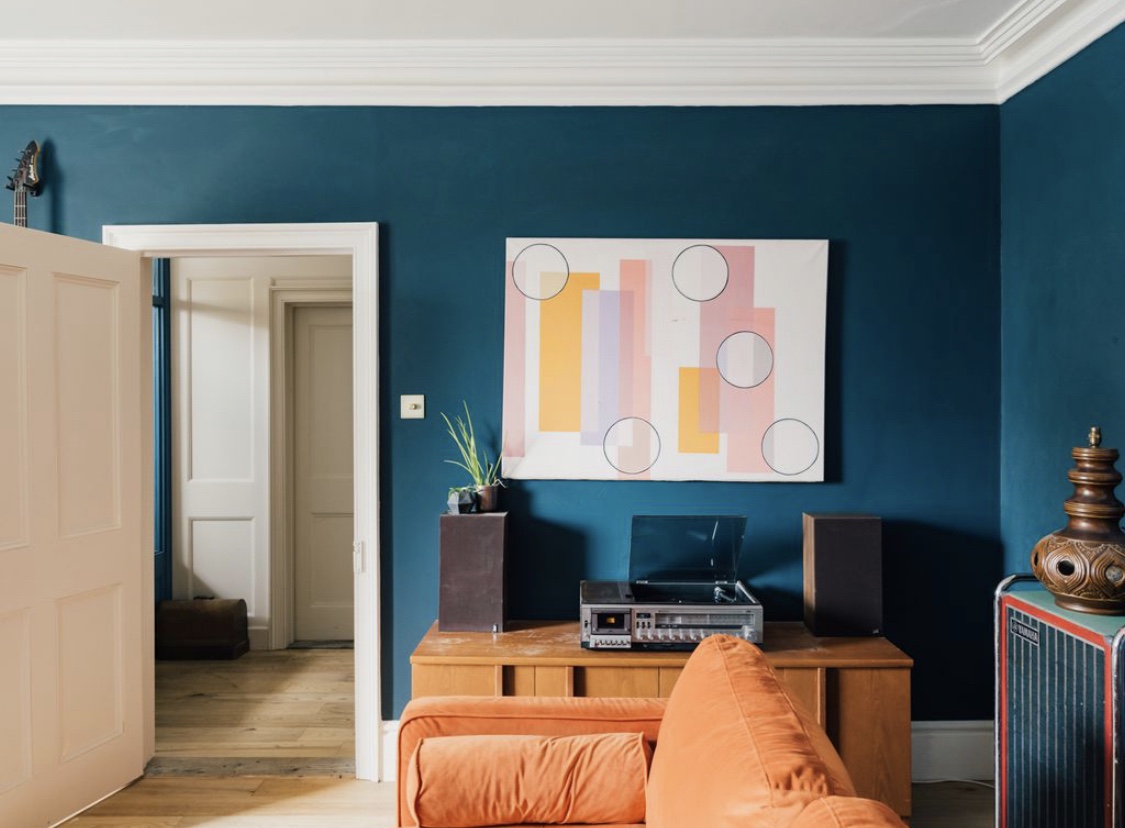 The exterior façade shows us a Grade II listed Georgian terrace with original tall sash windows and a pop orange front door. Prepare to be wowed by the gorgeous interior, it’s period feature galore with ceiling coving, roses, original flooring and internal doors but it’s also interior design heaven with the bold colours, gallery walls and quirky decor pieces.